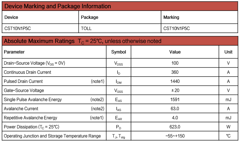 圖三:CST10N1P5C TOLL封裝(100V/1.1mohm)