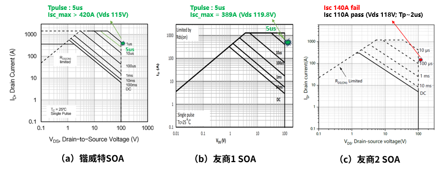 問題:MOSFET完全導通時電流迅速上升,功耗為Pon=Isc2*Rds(on),MOSFET嚴重發熱,可靠性下降。