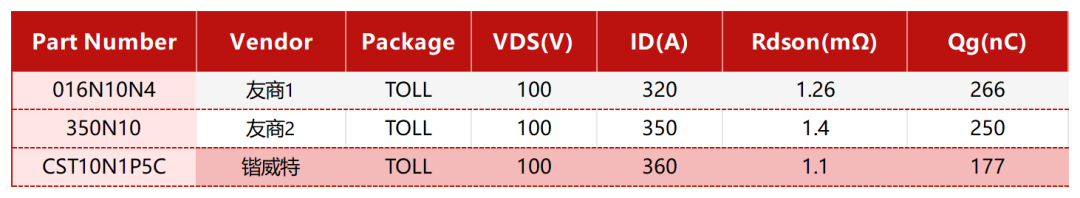 表1:CST10N1P5C與友商相同應用MOS柵極電荷對比