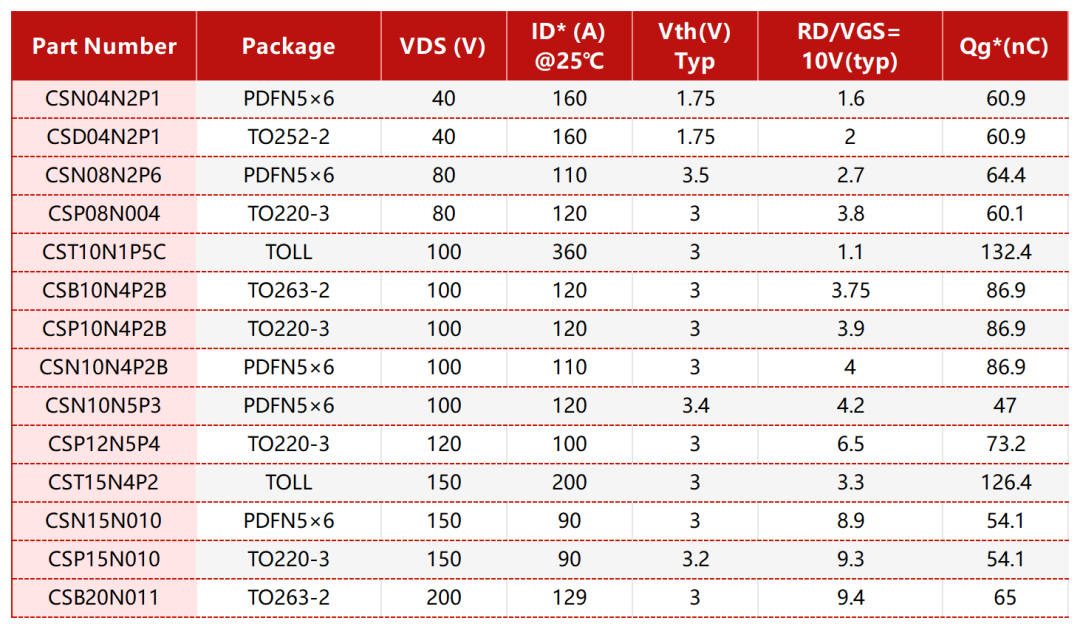 導通電阻(Rds-on):導通電阻越小,損耗和發熱越低,效率越高,尤其在多管并聯時,低Rds-on可進一步優化性能。