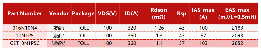 表2:CST10N1P5C與友商相同應用EAS能力對比