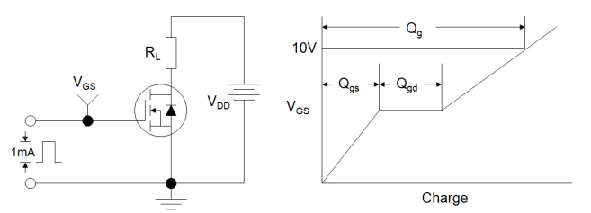 柵極電荷測試電路通常用于測量MOSFET的柵極電荷特性。柵極電荷(Qg)是評估開關性能的重要參數,它包括柵源電荷(Qgs)和柵漏電荷(Qgd)