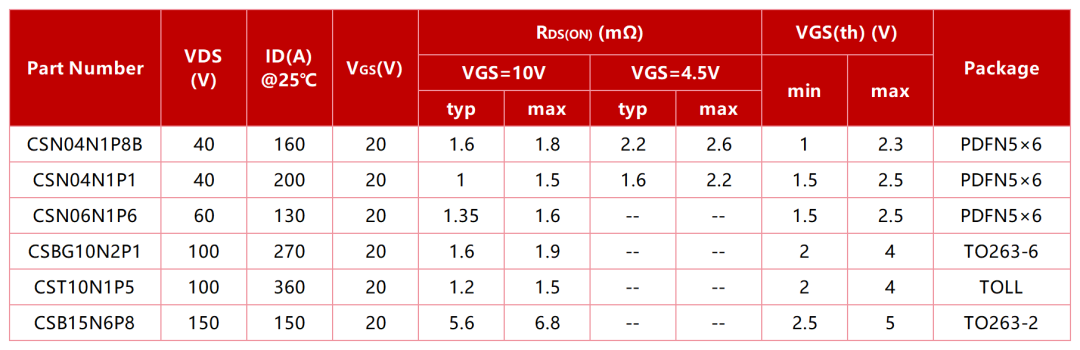 (1)耐壓:需要高于實(shí)際應(yīng)用輸入的最高工作電壓,通常選擇1.2~2 倍的余量。例如,48V系統(tǒng)建議選耐壓 ≥60V 的MOSFET,12V系統(tǒng)建議選耐壓 ≥30V的MOSFET。