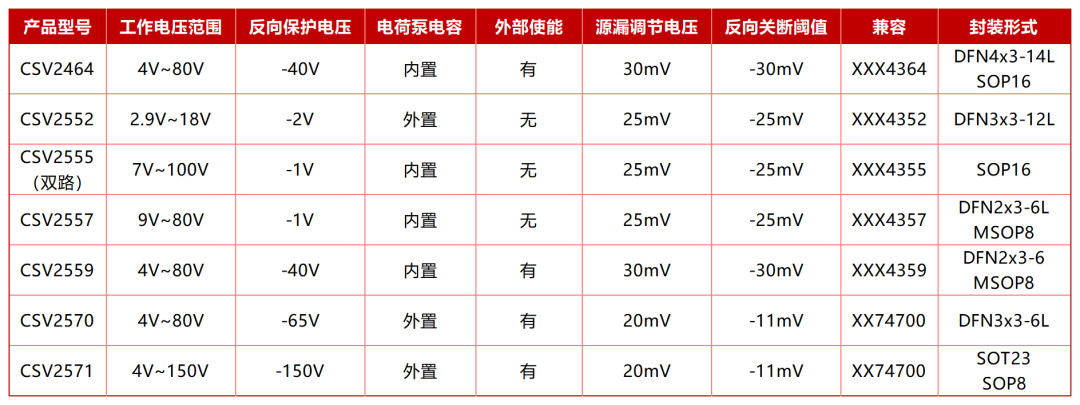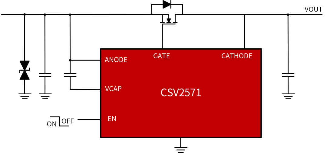 CSV2571 是一款耐壓高達(dá)150V低IQ的理想二極管控制芯片,與外部 MOSFET 配合工作。MOSEFT正向?qū)üぷ鲿r(shí),CSV2571通過對(duì)門級(jí)驅(qū)動(dòng)電壓調(diào)節(jié)將MOSFET壓降維持在20mV左右,可有效降低導(dǎo)通損耗。