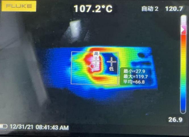 圖6 導(dǎo)通電流10A下溫度對(duì)比(20s)